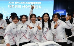 컬링 대표팀 선수들이 22일 서울 송파구 올림픽파크텔에서 열린 '2026 밀라노코르티나 동계올림픽 대한민국 선수단 결단식'에서 기념촬영 하고 있다. 김종호 기자 20260122 “우리의 실력과 매력 모두 보여드리겠다.” 2026 밀라노·코르티나담페초…