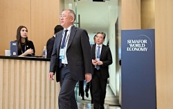정의선 현대차그룹 회장이 미국 워싱턴DC에서 13일(현지시간) 개막한 '세마포 월드 이코노미' 행사장에 들어서고 있다. 사진 현대차그룹 정의선 회장을 비롯한 현대차그룹 주요 경영진이 미국 워싱턴DC에서 13일(현지시간) 개막한 ‘세마포 월드 이코노미’(세…