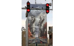 지난 13일 이란 테헤란에 ‘이란 역사 영웅들을 기리며’란 문구와 함께 두 인물이 미국 항공모함 등을 막는 듯한 그림이 걸려 있다. 왼쪽은 지난달 26일 호르무즈해협 봉쇄 작전 중 이스라엘 공습에 숨진 알리레자 탕시리 이슬람혁명수비대 해군 사령관이다. 오른쪽은 1915…