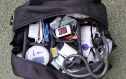 의료진이 환자 방문진료를 위해 챙긴 가방에 각종 의료기기 등이 빼곡하게 담겼다. 중앙포토 빨라지는 고령화 속에 방문진료의 필요성이 커지고 있지만, 잘 모르거나 인력·보상이 부족하다는 이유 등으로 의사들의 참여는 저조한 것으로 나타났다. 22일 대한의…