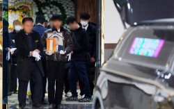 지난 15일 광주 광산구 한 장례식장에서 ‘광주대표도서관 붕괴 사고’ 희생자 4명 중 한 명인 50대 김모 씨의 발인식이 엄수되고 있다. 지난 11일 광주대표도서관 건립 공사 현장 일부가 무너지면서 근로자 4명이 잔해에 매몰됐다가 숨진 채 발견됐다. 연합뉴스 …