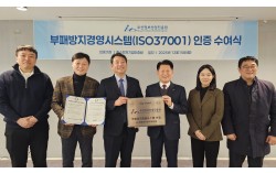 엄진엽 중소벤처기업인증원 원장(오른쪽 세 번째)과 김태열 부산정보산업진흥원 원장(오른쪽 네 번째) 및 양 기관 관계자들이 ISO 37001(부패방지경영시스템) 인증서 및 인증현판 수여식 후 함께 기념촬영을 하고 있다. 중소벤처기업인증원(원장 엄진엽, KO…
