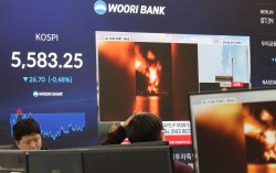 12일 서울 중구 우리은행 딜링룸에 코스피가 표시되고 있다. 이날 코스피는 전장 대비 26.70포인트(0.48%) 내린 5,583.25에 장을 마쳤다. 연합뉴스 국내 투자자의 해외 주식 투자 열기가 좀처럼 식지 않고 있다. 중동 사태 이후 국내 증시의 변…