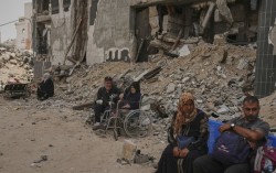 1일(현지시간) 가자지구에서 이스라엘의 공습으로 파괴된 병원 앞에 환자들이 앉아 있다. AP=연합뉴스 카타르에서 가자 휴전 협상이 진행 중인 가운데 팔레스타인 무장정파 하마스가 이스라엘인 인질 10명을 석방하기로 이스라엘 측과 합의했다고 밝혔다. 양측은…