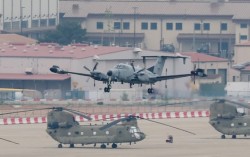 지난 5월 23일 경기도 평택시 팽성읍 주한미군기지 캠프 험프리스에 정찰기 RC-12X 가드레일이 이륙하고 있는 모습. 뉴스1 약 2만8500명 수준인 주한미군 규모를 약 1만명으로 줄여야 한다고 피트 헤그세스 미국 국방장관 수석 고문 출신의 댄 콜드웰이…