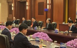 10일 오후 중국 베이징 인민대회당에서 한국국회 대표단(단장 이학영 부의장)이 중국 공산당 서열 3위 자오러지 전국인민대표대 상무위원장을 면담했다. 사진 베이징특파원단 공동취재단 이학영 국회부의장이 중국 내 권력 서열 3위인 자오러지 전국인민대표대회(전인…