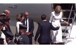 8일(현지시간) 에마뉘엘 마크롱 프랑스 대통령이 전용기에서 내리는 브리지트 여사에게 손을 내밀었으나, 브리지트 여사가 난간만 잡고 내려오고 있다. 사진 X 캡처 에마뉘엘 마크롱 프랑스 대통령이 영부인 브리지트 여사에게 얼굴을 얻어맞는 듯한 장면으로 불거진 ‘부부싸…