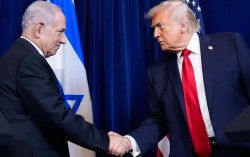 도널드 트럼프 미국 대통령(오른쪽)이 지난해 12월 29일(현지시간) 플로리다주 팜비치 마러라고 리조트에서 열린 기자회견에서 베냐민 네타냐후 이스라엘 총리와 악수하고 있다. AP=연합뉴스 도널드 트럼프 미국 행정부가 이스라엘에 이란의 석유·에너지 기반 시…