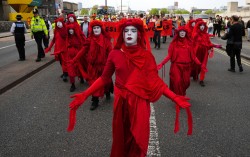 26일(현지시간) 런던 도심에서 열린 '저스트 스톱 오일'(JSO) 시위. AP=연합뉴스 문화유산에 페인트칠을 하고 명화에 수프를 끼얹는 등 과격한 시위로 악명을 떨친 영국의 환경단체가 시위 중단을 선언했다. 26일(현지시간) AFP 통신 등에 따…