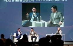 최태원 SK그룹 회장이 지난 10일 서울 강남구 한국고등교육재단에서 열린 '가치와 성장 포럼'에서 윤호중 행정안전부 장관과 대담하고 있다. 사회적 가치 기반의 성장 전략을 주제로 한 이날 포럼에는 정책·기업·학계 관계자 150여명이 참석했다. 사진 SK사회적가치연구원 …