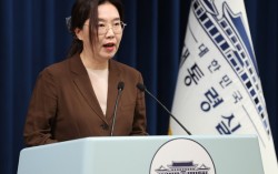 강유정 대변인이 5일 오전 서울 용산 대통령실 청사에서 국민임명식 초청식 전달 관련 브리핑을 하고 있다. 대통령실사진기자단 대통령실은 광복절에 개최하는 국민임명식에 문재인·이명박·박근혜 전 대통령과 고(故) 노무현·노태우·전두환 전 대통령의 배우자를 초청한다고 5…