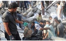 공습으로 파괴된 이란 초등학교 잔해와 구조대원들. 로이터=연합뉴스 이란의 한 초등학교 공습으로 어린이와 교사 175명이 사망한 참변과 관련해 이란 측이 미군이 학교를 공격했다는 증거물이라며 미사일 파편 사진을 공개했다. 이들 파편을 두고 미국 일간 뉴욕타임스(NY…