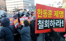 29일 국회 앞에서 한동훈 전 국민의힘 대표 지지자들이 한 전 대표에 대한 제명 철회를 촉구하고 있다. 연합뉴스 한동훈 전 국민의힘 대표가 결국 제명되자 친한계는 29일 오후 기자회견을 열고 입장을 밝힐 예정이다. 친한계 의원들은 이날 오후 1시 20분 국회…