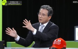 한·미 관세협상을 진두지휘한 김용범 대통령실 정책실장이 3일 ‘KBS 일요진단 라이브'에 출연해 ‘마스가(MASGA·Make American Shipbuilding Great Again)’ 모자를 공개하고 있다. KBS 캡처 김용범 대통령실 정책실장은 3…