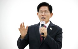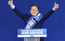 이재명 더불어민주당 대선 경선 후보가 19일 충북 청주체육관에서 열린 제21대 대통령선거 후보자 선출을 위한 충청권 합동연설회에서 정견발표를 하고 있다. 뉴스1 이재명 더불어민주당 대선 경선 후보가 해양수산부를 부산으로 이전하겠다고 공약하자 인천 항만업계가 반발하…