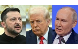 볼로디미르 젤렌스키 우크라이나 대통령(왼쪽부터),도널드 트럼프 미국 대통령, 블라디미르 푸틴 러시아 대통령.AFP=연합뉴스 부활절을 맞아 러시아가 ‘30시간 휴전’을 선언하자 우크라이나는 휴전연장을 역제안했다. AP통신 등에 따르면 블라디미르 푸틴 러시아 대…