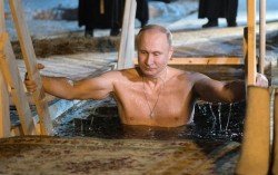 2018년 공개된 푸틴 대통령의 입수 모습. EPA=연합뉴스 블라디미르 푸틴(73) 러시아 대통령이 올해도 러시아 정교회 전통에 따라 한겨울 얼음물에 몸을 담그는 주현절(主顯節) 의식에 참여했다. 19일(현지시간) 타스통신에 따르면 드미트리 페스코프…