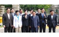 더불어민주당 3대특검(내란·김건희·순직해병) 종합대응 특별위원회 전현희 위원장과 특위 의원들 31일 첫 일정으로 윤석열 전 대통령이 수감된 서울구치소를 방문해 브리핑을 하고하고 있다. 국회사진기자단 더불어민주당이 내란·김건희·순직해병 등 3대 특검 특별위원회를 출…