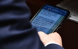 정성호 법무부 장관이 12일 오전 국회 예산결산특별위원회 전체회의에 출석해 이재명 대통령의 대장동 재판 변호를 맡았던 조상호 정책보좌관과 텔레그램으로 대화를 나누고 있다. [사진 문화일보] 조상호 법무부 장관 정책보좌관은 12일 대장동 1심 항소 포기 논…