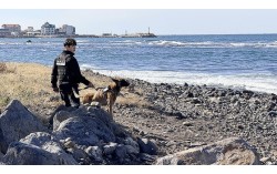 “아이들 코나 입에 댈까 봐 아찔” 11일 오후 제주시 이호동 등 북부 지역 해안가에서 제주경찰 과학수사대 직원이 체취증거견 '페르난도'와 함께 마약류 의심물체 수색활동을 벌이고 있다. 최충일 기자 “아이들 데리고 자주 나오는 해안인데, 마약 찾으려고…
