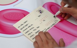 지난 9월 서울 중구 청계광장에서 열린 자살예방 관련 'SOS 마음의 전화' 행사에서 한 시민이 응원 메시지를 담은 '마음의 엽서'를 쓰고 있다. 연합뉴스"꽃비가 유난히도 휘날리던 지난 봄날, 봄맞이 하듯 뒤도 안 돌아보고 냉정히 떠나버린 당신. 시간이 지날수록 더…