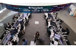 코스피가 급등하며 매수 사이드카가 발동한 10일 오전 서울 중구 하나은행 딜링룸 전광판에 코스피 시황이 표시되고 있다. 이날 코스피는 전 거래일 대비 5.17% 오른 5523.21, 코스닥은 4.15% 오른 1,147.99, 원·달러환율은 24.7원 내린 1470.8원…