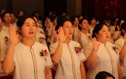 성신여대 간호학과 2학년 재학생 총 111명이 ‘제18회 나이팅케일 선서식’에서 간호인으로서의 사명감과 윤리의식을 다짐하는 선서를 하고 있다. 성신여자대학교(총장 이성근) 간호대학은 지난 7일, 서울시 강북구 운정그린캠퍼스 중강당에서 ‘제18회 나이팅게일…