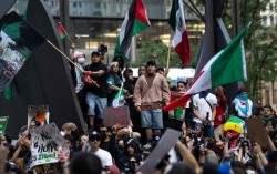 불법 이민자 단속에 반대하는 시위가 미국 전역으로 확산한 가운데 10일(현지시간) 시카고에서 시위대가 피카소 조형물 위에 올라가 멕시코 국기 등을 흔들고 있다. [AFP=연합뉴스] 10일(현지시간) 오전 미국 캘리포니아주 로스앤젤레스(LA)의 대표적 명소…