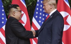2018년 6월 12일 도널드 트럼프 미국 대통령(오른쪽)과 김정은 북한 국무위원장이 싱가포르 센토사섬에 위치한 카펠라 호텔에서 만나 악수를 하고 있다. 연합뉴스 도널드 트럼프 미국 대통령은 김정은 북한 국무위원장과의 서신 교환에 열려 있으며 2018년 …