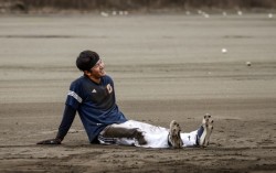 두산 내야수 안재석이 지난해 11월 일본 미야자키 마무리훈련에서 진행된 디펜스 데이에서 펑고를 받으며 괴로워하고 있다. 디펜스 데이는 두산이 내야진 강화를 위해 기획한 선수별 맞춤 펑고 훈련이다. 안재석은 박준순, 오명진 등과 두산 내야진을 책임질 기대주로 꼽힌다. 사…