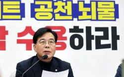 조국혁신당 서왕진 원내대표가 27일 서울 여의도 국회에서 열린 의원총회에서 발언하고 있다. 연합뉴스 조국혁신당은 27일 도널드 트럼프 미국 대통령이 한국 국회가 한미 간의 무역합의 이행에 필요한 법적 절차를 진행하지 않았다며 한국산 제품에 대한 관세를 무역합의 이…