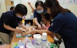 지난 4일 오전 서울 중랑구 서울의료원에서 한 발달장애인이 의료진 3명과 함께 채혈을 하는 모습. 의료진이 “잘하고 있어요, 괜찮아요~”라며 다독이고 있다. 사진 푸르메재단 저 오늘 (검사) 너무 잘했어요. 박수쳐주세요. 발달장애인 전승완(31)씨가 지난 4…
