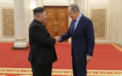 김정은 북한 국무위원장(왼쪽)과 세르게이 라브로프 러시아 외무장관. 연합뉴스 [속보] 北 "러시아 외무장관 11∼13일 방문"