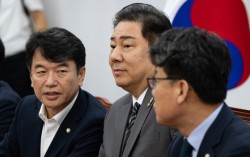 김병기 더불어민주당 당대표 직무대행 겸 원내대표를 비롯한 지도부가 원내대책회의에 앞서 대화하고 있다. 왼쪽부터 문진석 원내운영수석부대표, 김 대표, 진성준 정책위의장. 뉴스1 더불어민주당이 ‘대북 전단 살포 금지법’을 7월 임시회 중에 처리하겠다고 소매를…