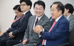 왼쪽부터 김문수 전 국민의힘 대선후보, 한동훈 전 국민의힘 대표, 안철수 의원, 홍준표 전 대구시장. 사진은 지난 4월 29일 서울 여의도 국민의힘 중앙당사에서 열린 대선후보 3차 경선 진출자 발표 당시 네 후보의 모습. 국회사진기자단 대선 이후 약 한 …