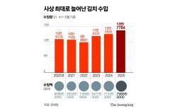 올해 5월까지 김치 수입이 사상 최대를 기록했다. 국내 김치ㆍ배춧값이 크게 오르면서 저렴한 중국산 김치를 찾는 경우가 늘었기 때문으로 해석된다. 정근영 디자이너 24일 관세청 수출입무역통계에 따르면 올해 5월까지 김치 수입량은 13만7783t으로 지난해 같은 기간…