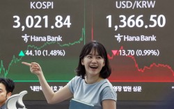 지난 23일 서울 중구 하나은행 본점에서 직원들이 증시와 환율을 모니터하고 있다. 연합뉴스 코스피가 중동 불안 해소 기대감에 힘입어 24일 장중 3100선을 돌파했다. 전일 대비 46.67포인트(1.55%) 오른 3061.14로 출발한 코스피 지수는…