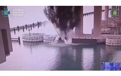 우크라이나 보안국이 3일 크림대교를 수중 폭파하는 영상을 공개했다. 우크라이나는 지난 1일 러시아 공군기지에 대한 대규모 드론 공격에 성공해 70억 달러(약 9조7000억원) 상당의 Tu-160, Tu- 95 등 전략폭격기 41대를 파괴했다고 밝혔다. [사진 우크라이나…