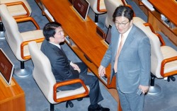 권성동 국민의힘 당시 원내대표(오른쪽)와 안철수 의원이 지난해 12월 13일 오후 서울 여의도 국회에서 열린 제419회국회(임시회) 제3차 본회의에서 대화하고 있다. 뉴스1 권성동 국민의힘 의원이 8일 자신을 인적 청산 대상으로 지목한 후 혁신위원장 사퇴와 당대표…
