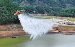 5일 최악의 가뭄 사태가 이어지는 강원 강릉시 주 상수원인 오봉저수지에서 산불 진화 헬기가 저수율을 높이기 위해 물을 뿌리고 있다. [연합뉴스] 주문진읍·왕산면·연곡면은 제외 극심한 가뭄을 겪고 있는 강원 강릉시가 대형 저수조가 있는 아파트 등을 대상으로 …