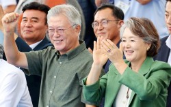 문재인 전 대통령과 김정숙 여사가 지난해 5·18민주광장에서 열린 2025 세계양궁선수권대회 리커브 여자 개인전을 관람하면서 환호하는 모습. 연합뉴스 김정숙 여사가 문재인 전 대통령 재임 중 옷값 수천만원을 청와대 특수활동비로 지불했다는 의혹을 검찰, 경찰이 무혐…