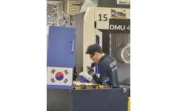 지난해 9월 프랑스 리옹에서 개최된 ‘제47회 2024 프랑스 국제기능올림픽’에 참가한 남종수씨(22) 모습. [사진 강원도교육청] 지난달 21일 강원도 춘천시 삼천동 베어스호텔 연회장. ‘직업계고 글로벌 현장학습 선배와의 대화’ 행사장 대형스크린에 싱가…