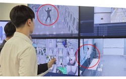 지난 13일 오후 서울 중구의 보안 기업 에스원 연구개발(R&D)센터에서 연구원들이 영상을 학습 시키기 위해 직접 촬영한 영상을 보고 있다. 박해리 기자 지난 13일 서울 중구의 보안 기업 에스원 연구개발(R&D)센터. 한쪽 벽면을 가득 채운 여러 대의 …