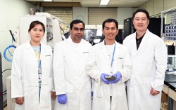 연구팀 사진. 왼쪽부터 김소연 책임연구원, Jahandar Muhammad 선임연구원, Muh Fadhil Albab 박사과정 학생연구원(논문 제1저자), 임동찬 책임연구원 한국재료연구원(KIMS, 원장 최철진) 에너지·환경재료연구본부 임동찬, 김소연 박…