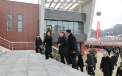 지난 15일 김정은 북한 국무위원장이 평양시 외곽 강동군 지방공업공장 준공식에 참석해 딸 주애와 함께 건물로 향하고 있다. [노동신문=뉴스1] 북한이 15일 김정은 국무위원장의 ‘지방발전 20×10 정책’에 따라 전국 5개 지역에 건설한 지방 공장의 준공…