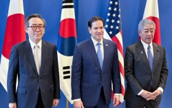 한미일 3국 외교수장 자료사진. 왼쪽부터 조태열 외교부 장관, 마코 루비오 미 국무장관, 이와야 다케시 일본 외무상. 연합뉴스 한국과 미국, 일본이 19일(현지시간) 미 워싱턴DC에서 한미일 3자 협력 사무국 회의를 개최했다고 미 국무부는 밝혔다. …