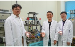 KERI 박수동 박사(가운데) 연구팀이 '열전발전 기준 소자 3종'을 들고 포즈를 취하고 있다. 한국전기연구원(KERI)이 중심이 된 출연(연)·기업 연합팀이 열을 전기로 바꾸는 ‘열전발전’의 산업화를 위한 큰 디딤돌을 마련했다. 열전발전은 서로 다…