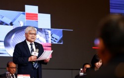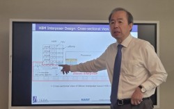 김정호 KAIST 교수가 차세대 HBM 기술 로드맵에 대해 설명하고 있다. 박해리 기자 “챗GPT 지브리풍 사진 열풍이 불었을 때 오픈AI 최고경영자 샘 올트먼이 그래픽처리장치(GPU) 10만개 있으면 연락 달라 했지만, 10년 후에는 ‘고대역폭메모리(H…
