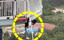 중국 서남부 구이저우(貴州)성 번지점프장에서 발생한 안전 사고. 사진 웨이보 캡처 번지점프에 도전한 한 중국 인플루언서가 운영 업체 직원의 실수로 난간에 부딪혀 허리뼈가 골절되는 사고가 발생했다. 최근 홍성신문과 웨이보 등에 따르면 지난달 30일 중…