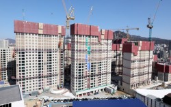 서울 시내 아파트 공사 현장. 뉴스1 주택 공급 지표가 일제히 바닥을 향하고 있다. 21대 대선 유력 후보 모두 ‘주택 공급 확대’ 공약을 내걸었지만, 특단의 조치가 없다면 올해 말부터 주택 부족 사태가 현실화할 것이란 우려가 나온다. 30일 국토교…